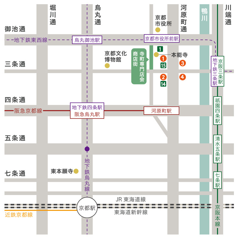 ・京阪電車「三条駅」下車、西へ徒歩約5分