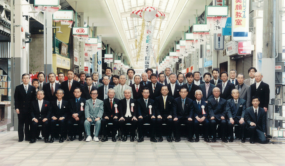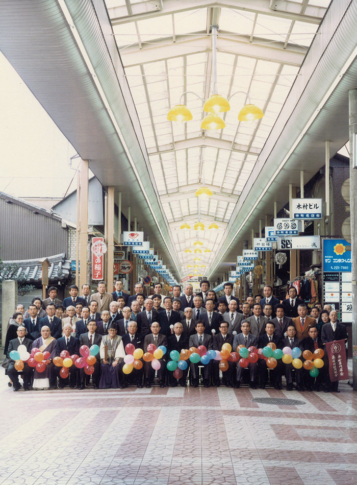 当組合創立より遡ること半世紀、1922年(大正11年)9月に近隣地域の繁栄を目指し、寺町通三条~二条間の五町内(天性寺前町、下本能寺前町、上本能寺前町、妙満寺前町、榎町)の小売商業団が集まり「五盛會」が設立しました。 2022年(令和4年)は当組合創立50周年、五盛会創立100周年のダブル記念年です。