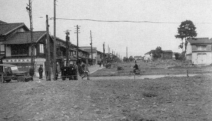 御池通寺町より西を眺む疎開のため御池通りが広くなり現在の幅に