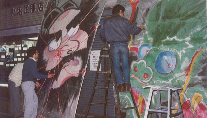 1981年(昭和56年)7月 祇園祭提灯の取付